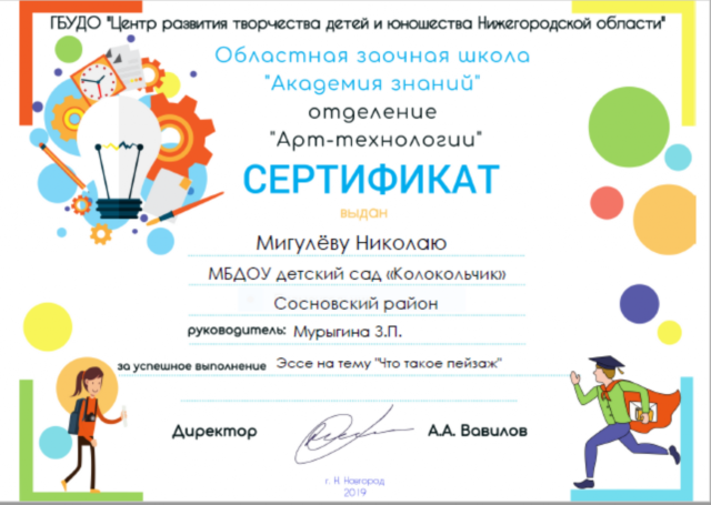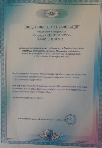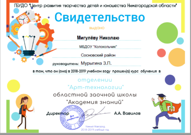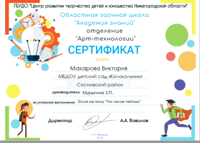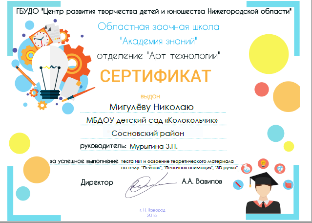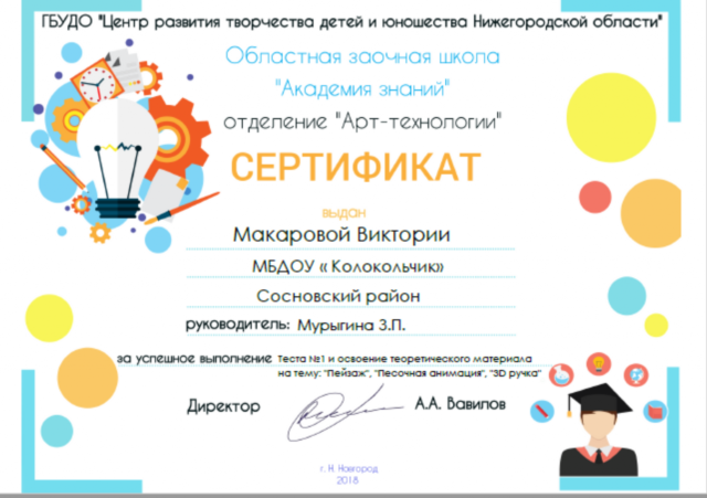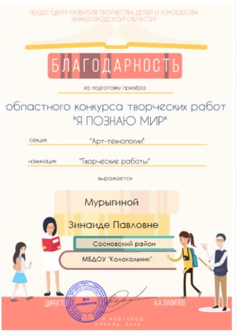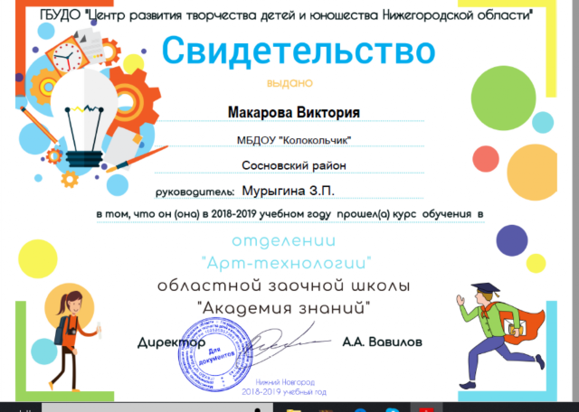 Свидетельство об обучении "Арт-технологии" 2019г. |