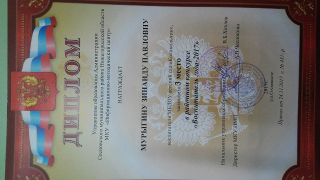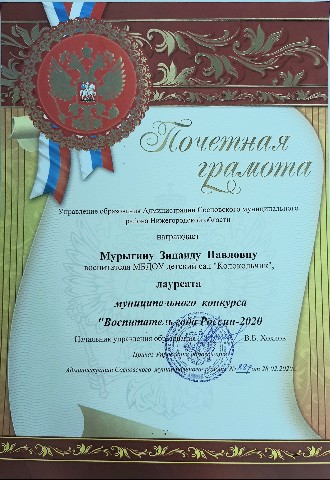 Лауреат муниципального конкурса "Воспитатели России- 2020" |