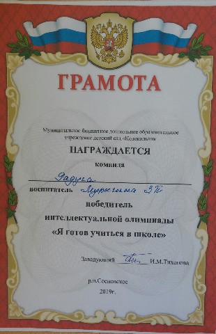 Подготовка победителя олимпиады "Я готов учиться в школе" МБДОУ детский сад "Колокольчик" 2019г. |