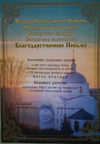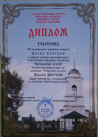 Участник епархиального фестиваля-конкурса "Пасхальные краски" 2019г |