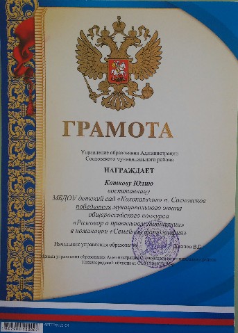 Победитель муниципального этапа общероссийского конкурса "Разговор о правильном питании"2019г. |
