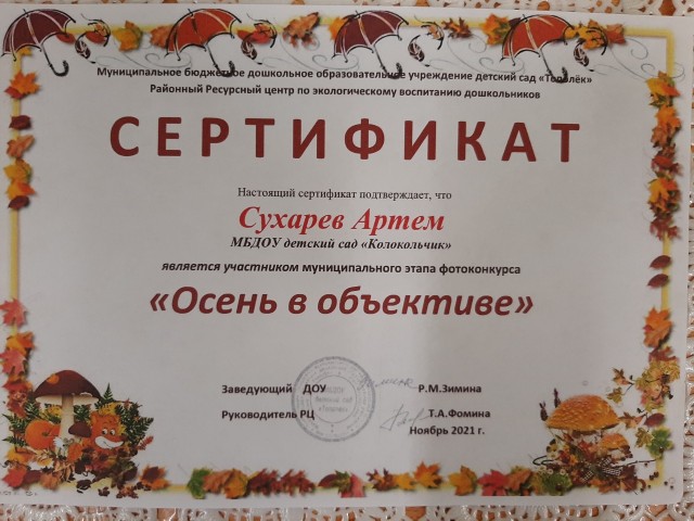 Участник муниципального фотоконкурса "Осень в объективе" 2021г. |