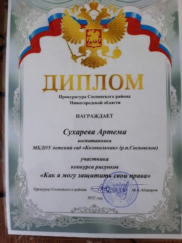 Диплом участника конкурса "Как я могу защитить свои права" 2022 г. |