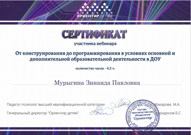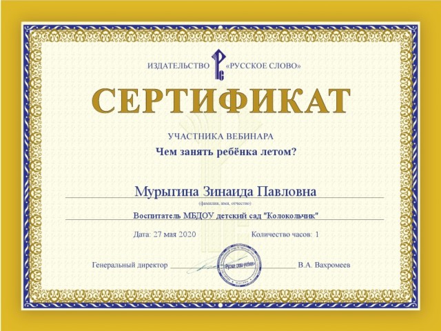 Участник вебинара "Чем занять ребенка летом" 2020г. |