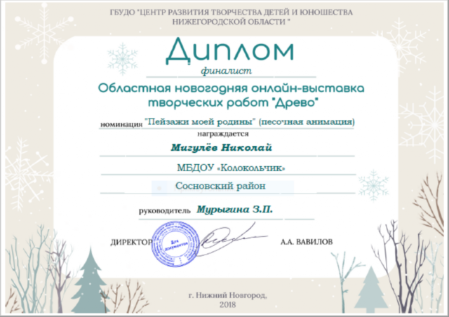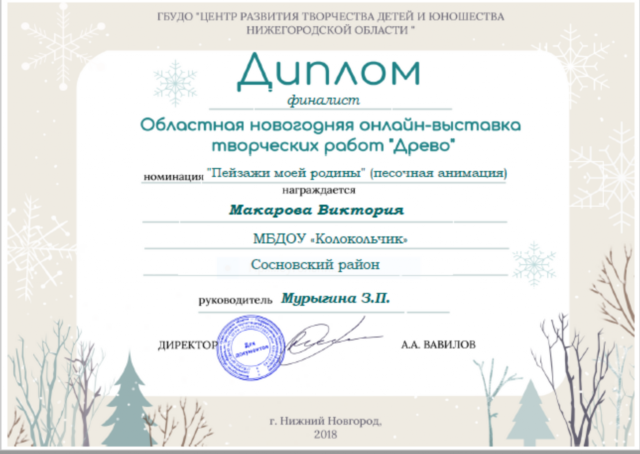 Диплом финалиста областной онлайн-выставки 2018г. |