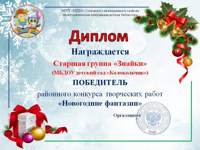 Диплом победителя районного конкурса творческих работ 2023г. |