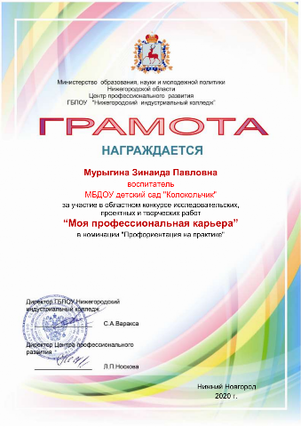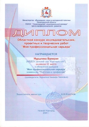 Призер конкурса "Моя профессиональная карьера" 2020г. |