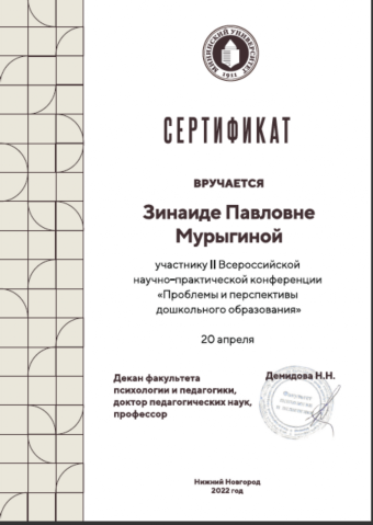 Сертификат участнику II Всероссийской научно - практической конференции 2022г. |