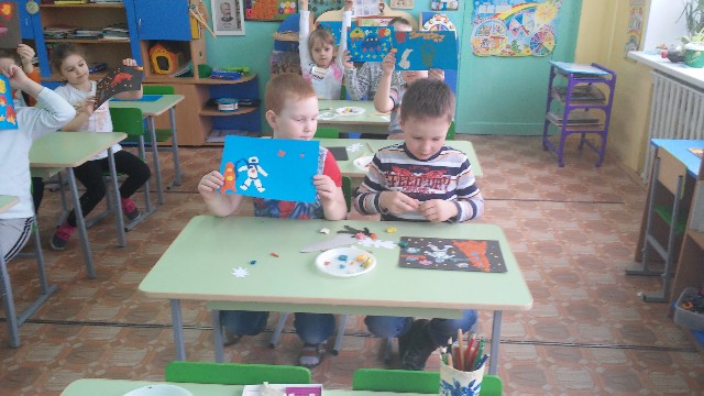 Космос.. Это всегда что - то необычное и захватывающее, манящее и таинственное. Космические путешествия к дальним мирам, другим планетам и звездам, это самые невероятные и притягивающие приключения. И вот, в преддверии праздника "Дня космонавтики", в группе выходного дня прошло очередное занятие, посвященное этому дню. Ребята с интересом посмотрели фильм "Почемучкам о космосе", высказали свои предположения для чего нужно изучать космос. А, затем, после краткой беседы, я предложила детям нарисовать космос таким, как они его себе представляют.И конечно же, как всегда, мы рисовали нетрадиционным способом, на этот раз мы использовали - пластилинографию. Вот что у нас получилось.