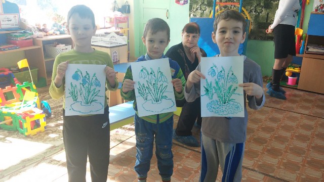 26.03.2017 года прошло очередное занятие в воскресной группе «Супермалыш», на котором мы продолжили знакомиться с нетрадиционным способом изобразительной деятельности - рисование ватными палочками (пуантилизм). На занятии мы рассмотрели первые весенние цветы – подснежники, послушали легенду об этих цветах, вспомнили сказку С.Я. Маршака «Двенадцать месяцев», а затем под музыку П. И. Чайковского «Апрель. Подснежник» мы приступили к работе.